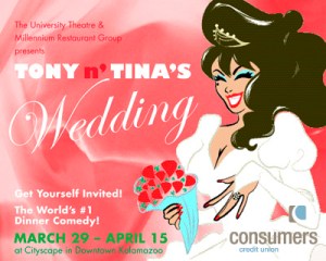 Kalamazoo, Mich. – Consumers Credit Union is partnering with WMU’s University Theatre and Millennium Restaurant Group to present the dynamic, highly entertaining production of Tony ‘N Tina’s Wedding. The audience will have in store a wonderful comedy about Tony and Tina’s hysterical big-family wedding, plus enjoy an authentic Italian dinner prepared by Cityscape.