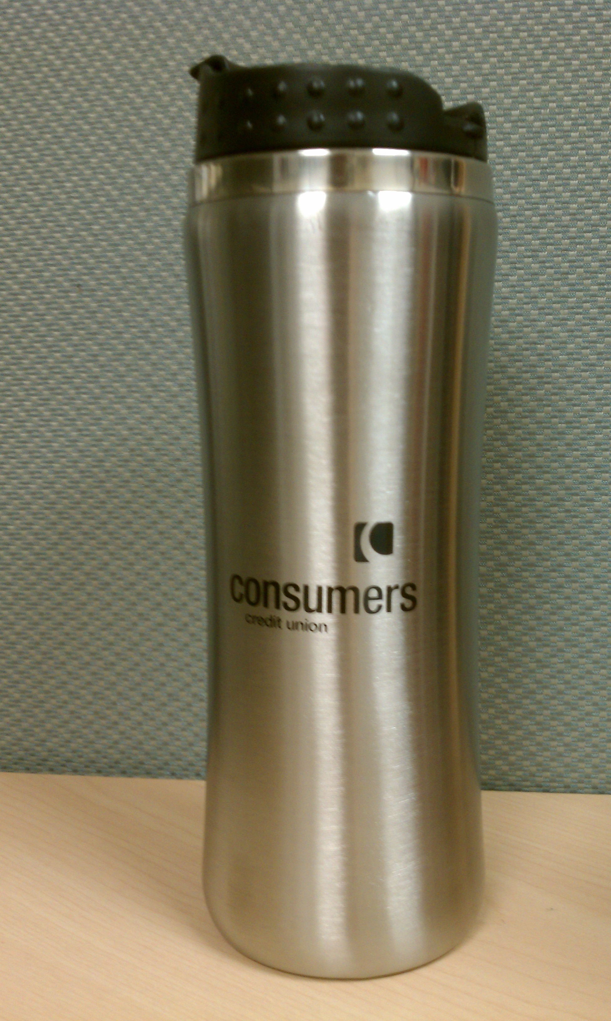 Kalamazoo, Mich. – Consumers Credit Union announces a unique partnership with Western Michigan University’s Office for Sustainability as lead partner of its EcoMug™ Program. All incoming students will receive the high-quality, ISO-certified, stainless steel mug, free. Along with WMU’s sustainability logo a QR code is imprinted on the mug offering special discounts for students. The EcoMug™ Program, originally designed by students of WMU professor Dr. Harold Glasser (now Executive Director for Campus Sustainability), encourages students to be earth-friendly while reducing disposable cup use on campus.